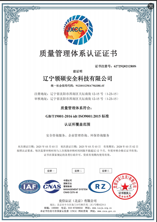 遼寧領(lǐng)碩安全科技有限公司位于遼寧省沈陽(yáng)市渾南區(qū)天壇南街12-15號(hào),注冊(cè)資金300萬(wàn)。主要經(jīng)營(yíng)范圍為遼寧省范圍內(nèi)的安全環(huán)保咨詢,生產(chǎn)安全事故應(yīng)急預(yù)案技術(shù)服務(wù)、企業(yè)雙重預(yù)防機(jī)制建立、履職能力評(píng)估、企業(yè)科研項(xiàng)目安全部分服務(wù)等的技術(shù)服務(wù)機(jī)構(gòu)。現(xiàn)有員工12人,其中包括5名遼寧省級(jí)安全生產(chǎn)專家。成立于2022年4月18日,在盤錦市成立至今已經(jīng)為30余家企業(yè)提供了安全環(huán)保技術(shù)咨詢。 業(yè)務(wù)范圍包括:技術(shù)服務(wù)、技術(shù)開發(fā)、技術(shù)咨詢、技術(shù)交流、技術(shù)轉(zhuǎn)讓、技術(shù)推廣,安全咨詢服務(wù),環(huán)保咨詢服務(wù),標(biāo)準(zhǔn)化服務(wù),企業(yè)管理咨詢,科技中介服務(wù),工程管理服務(wù),特種作業(yè)...查看更多